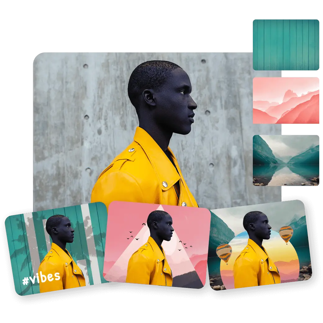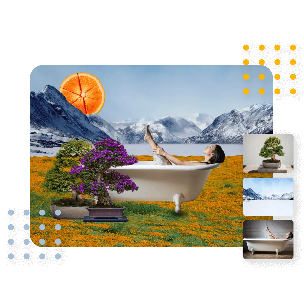 Sanal Sahneleme'nin görüntüleri birleştirme aracıyla olanaklar sınırsızdır. Durum böyleyken, mükemmel fotoğraf kolajları, montajlar veya istediğiniz birden fazla fotoğraf içeren başka görseller yapın. Kendi fotoğraflarınızı ekleyin veya stoktan seçip bir sonraki projeniz veya bir fikriniz için birleştirin. Aracın kapsamlılığıyla, izleyicilerinizi ilk görüşte meraklandıran, memnun eden ve etkileyen görseller yaratın.