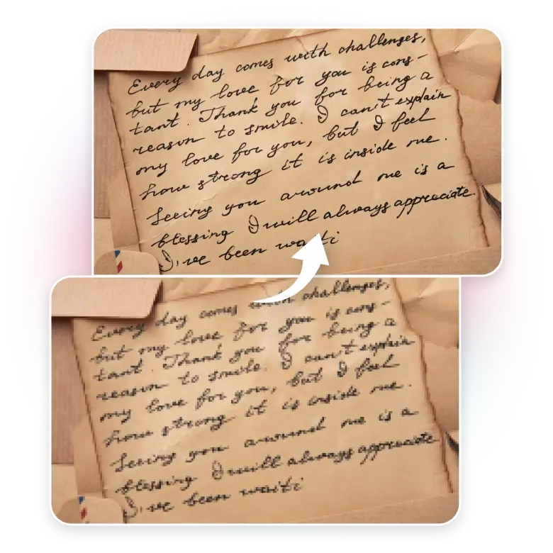 Bu, özellikle metin içeren resimler için harikadır! Metin içeren resimleri (küçük boyutlarda bile) yükselttiğinizde, daha net ve daha okunabilir hale gelirler. İster taranmış bir belge, ister logo, altyazı veya resim yazısı olsun, soluk veya bulanık metinler tekrar keskin ve pürüzsüz hale gelecektir.