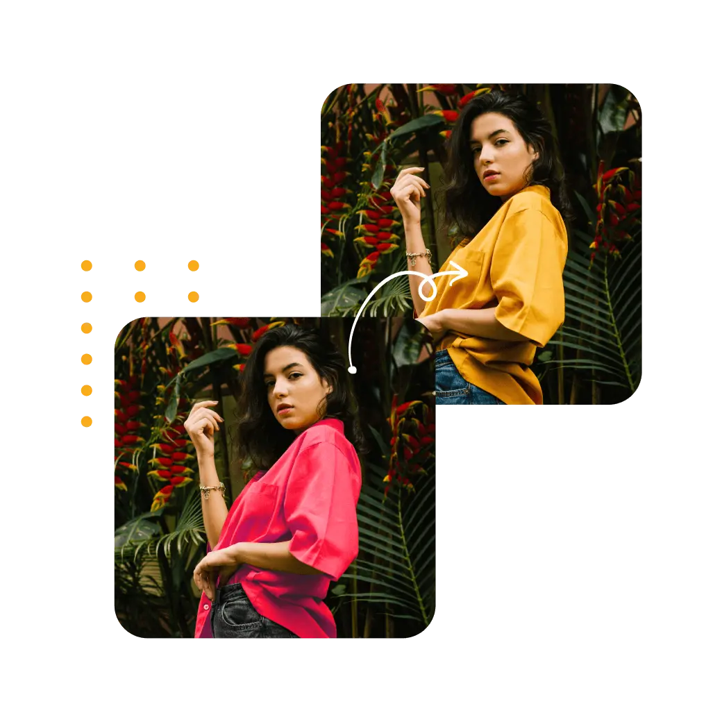 Fotoğraflarınızda farklı renkler denemek isteyen herkes için, renk sıçrama aracı sizin için olmazsa olmazdır. Burada ve orada birkaç tıklamayla, resimdeki saçınızın, kıyafetinizin, gözünüzün ve daha fazlasının rengini kolayca değiştirebilirsiniz. Harika bir resim için Ton, Doygunluk, Parlaklık ve Gölgeyi değiştirin. Arkadaşlarınızla eğlenmek veya e-ticaret platformunuzda aynı ürünü birden fazla renkte görüntülemeniz gerektiğinde ürün fotoğrafçılığı gibi profesyonel amaçlar için kullanmak için kişisel resimlerinizde deneyin.