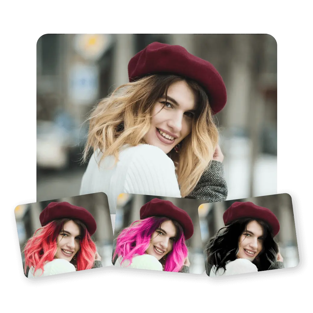 Saç Rengini Çevrimiçi Değiştirme aracımızla görünümünüzü güvenli ve kolay bir şekilde deneyin. Hiçbir taahhütte bulunmadan saniyeler içinde yeni saç renklerini deneyin. Yeni bir saç rengi düşünenler veya sosyal medya profillerini renklendirmek isteyenler için harika.