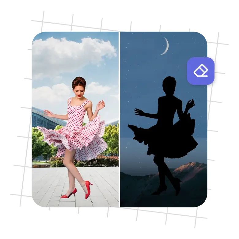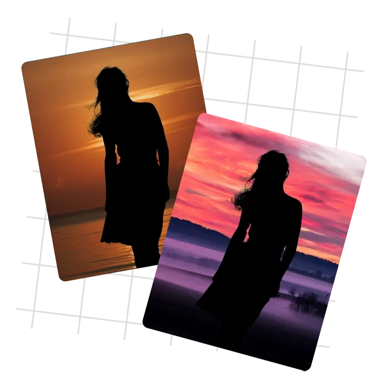 Siluetinizin genel çekiciliğini özelleştirerek yüz kat daha fazla artırın. Sanal Sahneleme, Bulanıklaştırma, Renk Değiştirme, Görüntüyü Yeniden Boyutlandırma, Fotoğrafa Metin Ekleme ve daha fazlası gibi çok çeşitli fotoğraf düzenleme araçları sunar. Kalp silüeti, kelebek silüeti, kız silüeti, denizkızı silüeti vb. gibi birden fazla silüetinizi güzelleştirmek için herhangi birini deneyin. Sanal Sahneleme ayrıca fotoğraflar için çok çeşitli önceden ayarlanmış ve özelleştirilebilir Tasarım şablonları sunar. Çarpıcı bir kompozisyon oluşturmak için silüetinizle herhangi birini seçin ve düzenleyin.