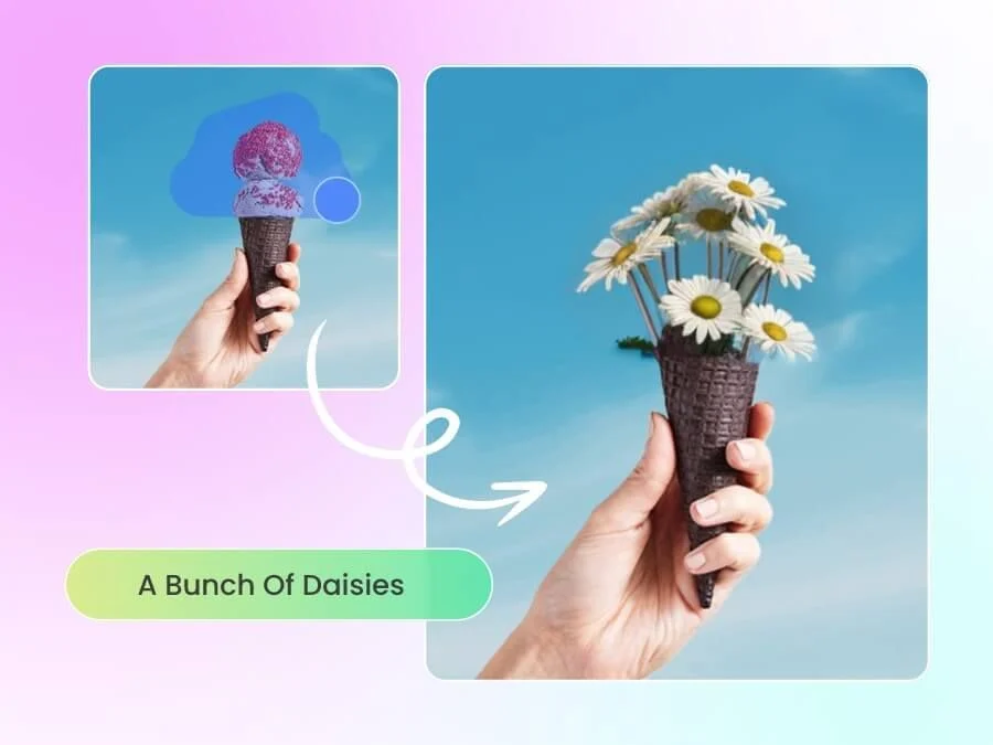 Fotoğraflarınıza metin istemiyle nesne ekleyebileceğinizi veya değiştirebileceğinizi hayal edebiliyor musunuz? Sadece bir alanın üzerine gelin, eklemek istediğinizi tanımlayın ve AI fotoğrafınıza yeni öğeleri sorunsuz bir şekilde harmanlayacaktır. İster bir emlak sahnesi için mavi gökyüzü eklemek ister saç renginizi değiştirmek olsun, AI fikirlerinizi anında hayata geçirir. Yaratıcılığınızı serbest bırakın. Bugün çevrimiçi fotoğraf düzenleyicimizden yararlanın ve resimleri tamamen yeni bir şekilde düzenleyin.