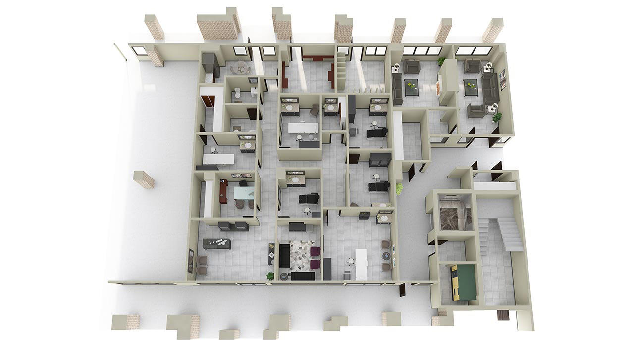 3 boyutlu tam renkli bir zemin planına sahip olmak, alıcıya veya kiracıya alanda yürümeye benzer bir görselleştirme sunacaktır. Zemin geçişleri ve kapının hangi yöne doğru açıldığı gibi önemli unsurları göstermek, gerçekten de bu en kaliteli müşterileri çekmede yardımcı olabilir.
